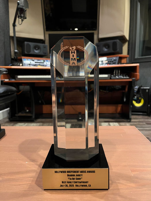 Brandon Jarrett MusicBrandon Jarrett, a seasoned film/TV composer and music producer, has just added “award-winning songwriter/composer” to his impressive list of credits. At the 2025 Hollywood Independent Music Awards, he took home Best Adult Contemporary Song for “I’m Not Sorry,” co-written with his friend and mentor, Allan Rich. The win marks a meaningful milestone in Brandon’s musical journey, highlighting his expanding voice as a songwriter and composer.